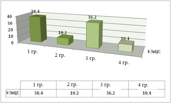 КЗвЦС | 38,4 ± 3 | 10,2 ± 3 | 36,2 ± 3 | 10,4 ± 3 |