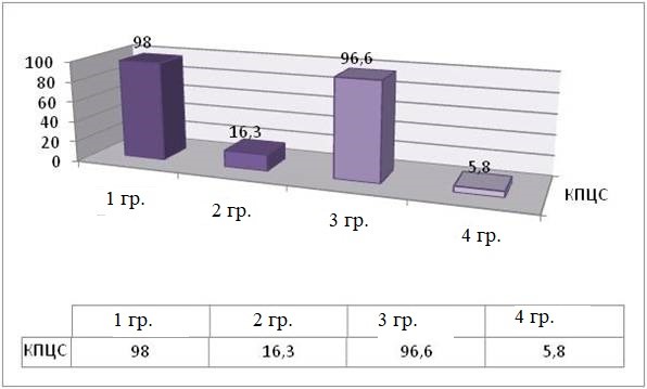 ЧПЦС | 98 ± 2,4 | 5,8 ± 2 | 16,3 ± 3 | 96,6 ± 3,4 |