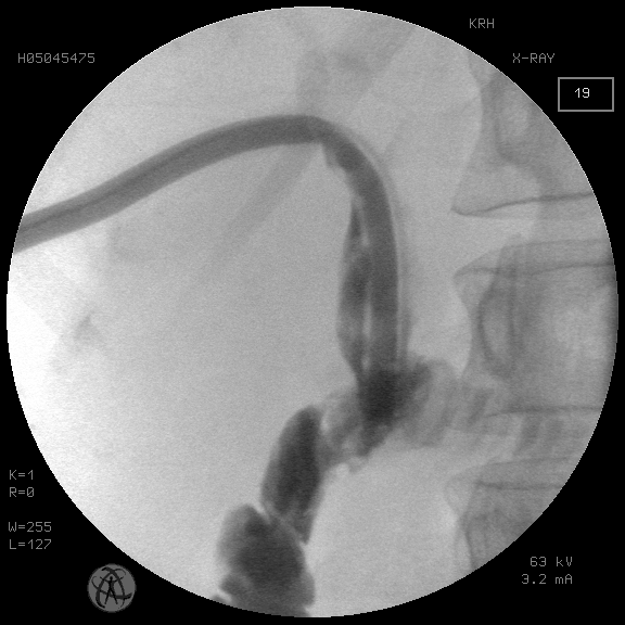 Fig. 4. The same observation. Staged percutaneous transhepatic cholelithotripsy